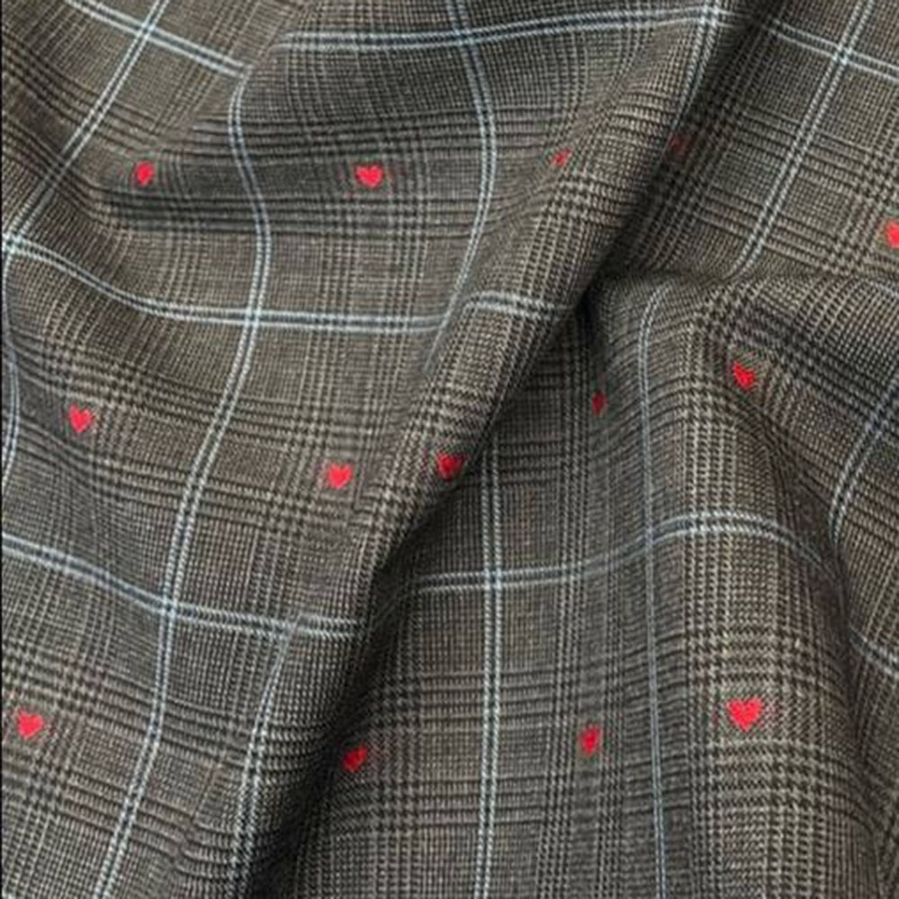 Костюмная шерсть в клетку Guc4i. Теплый материал средней плотности. Необычно оформленная клетка с маленькими сердечками с эффектом вышивки. Для костюмоа, юбок, жакетов, платьев.