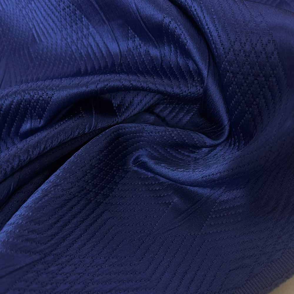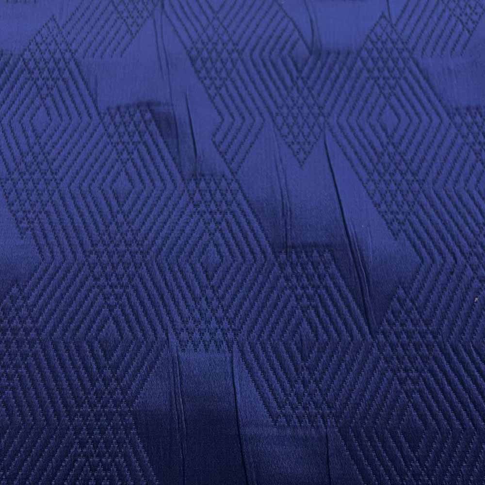 Костюмно-плательный жаккард в насыщенным синем оттенке. Геометрический фактурный орнамент. Достаточно плотный и пластичный, есть небольшая добавка эластана. Поверхность ткани гладкая с сатиновым лоском. Для жакетов, объемных юбок и платьев.