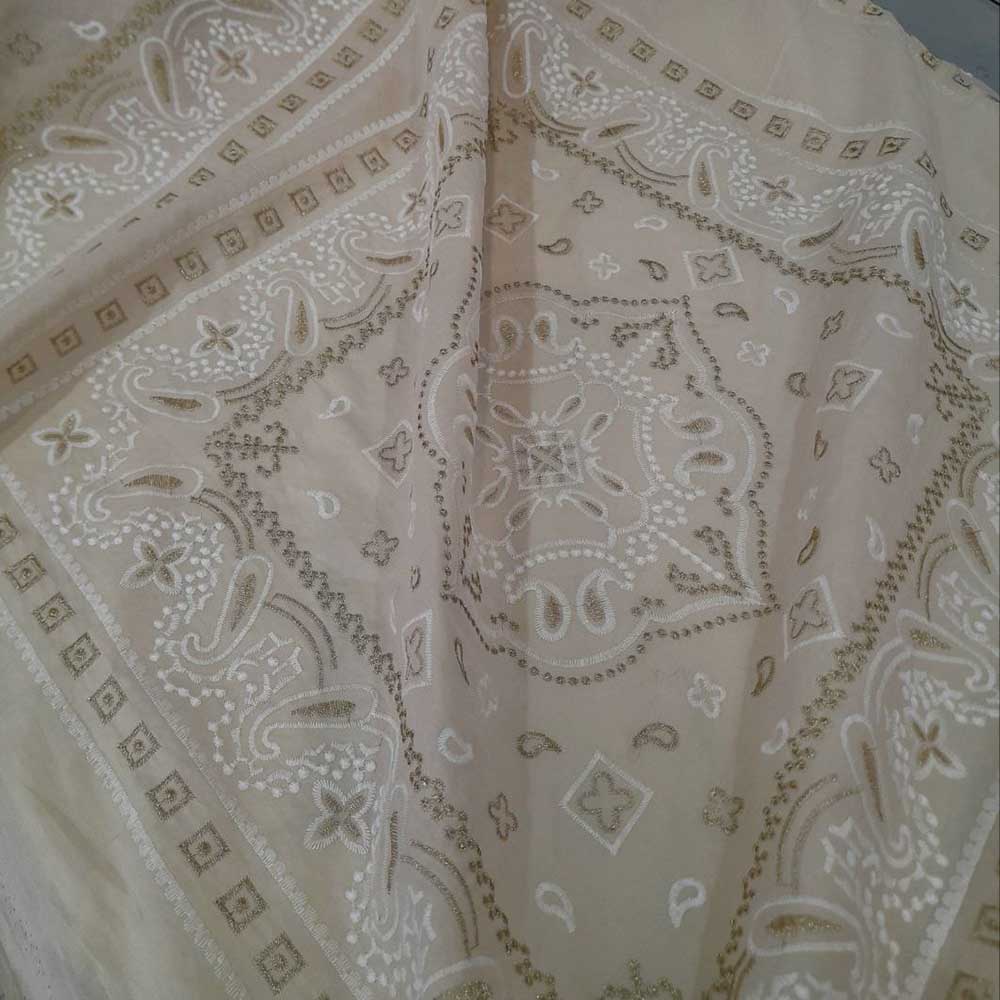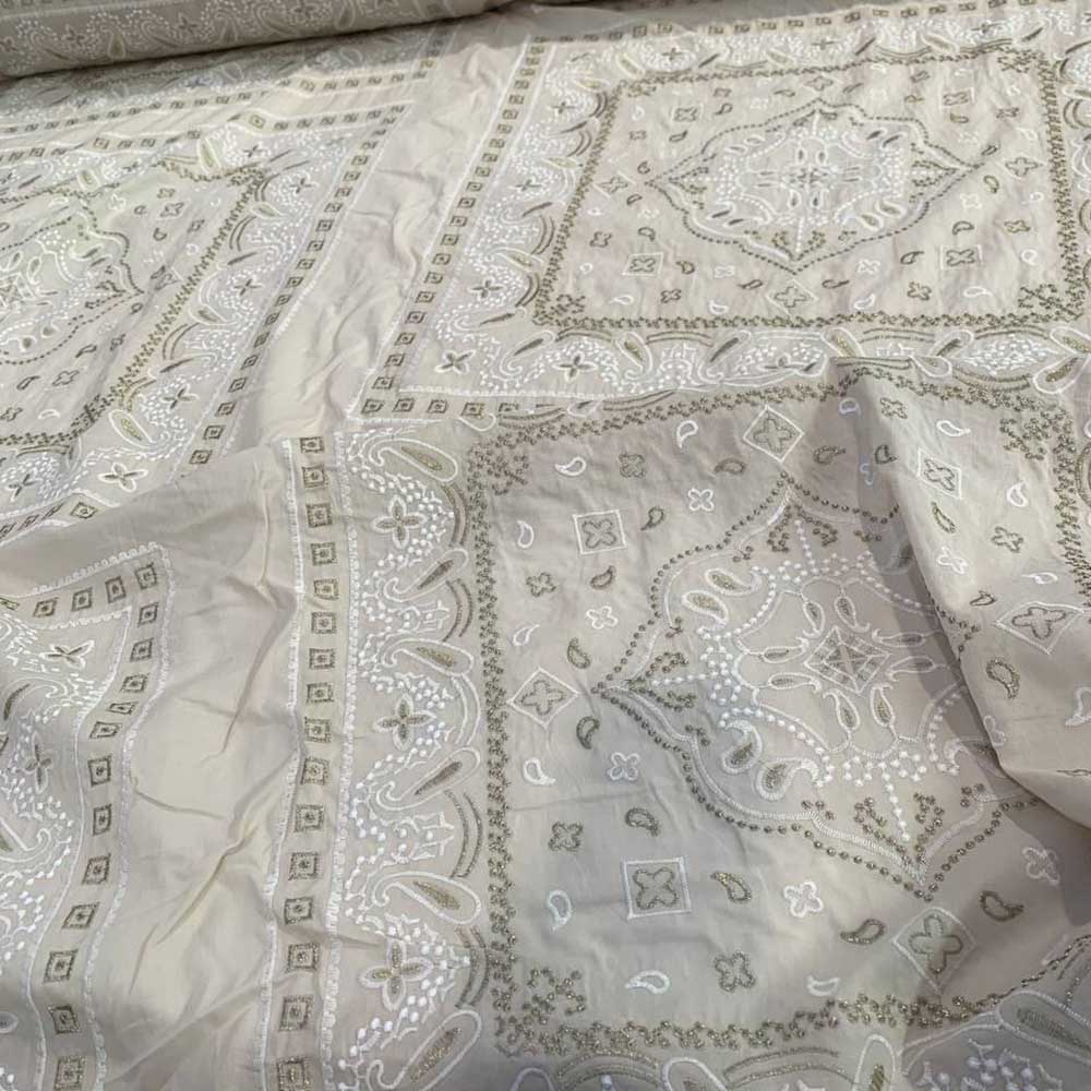 Плательно-блузочное шитье на легкой хлопковой основе. В светло-бежевой гамме, вышивка расположена в форме квадратов.  Мягкий и нежный материал в изящном оформлении.