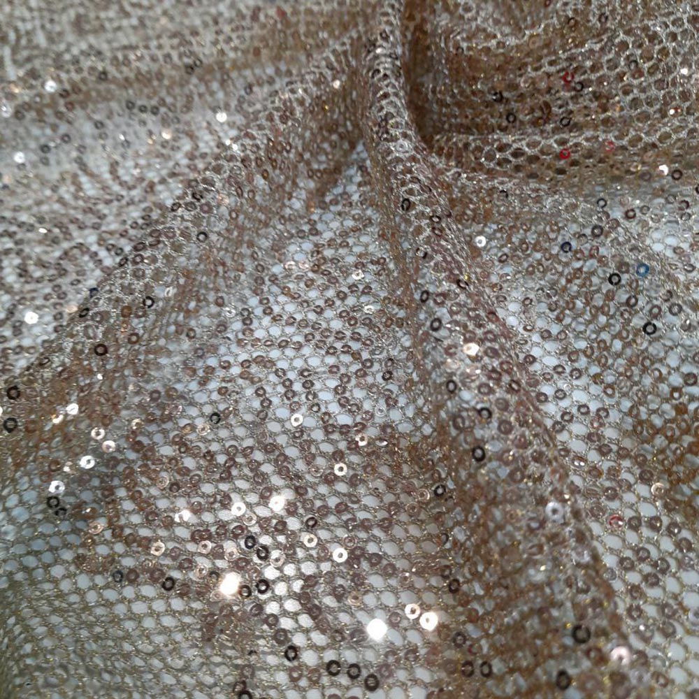 Сетка с с пайетками. На мягкой базе композиция вышивка пайетками, формирующими абстрактный узор. База мягкая, пластичная, ниспадающая. Для роскошных вечерних образов, нарядных блуз и юбок.