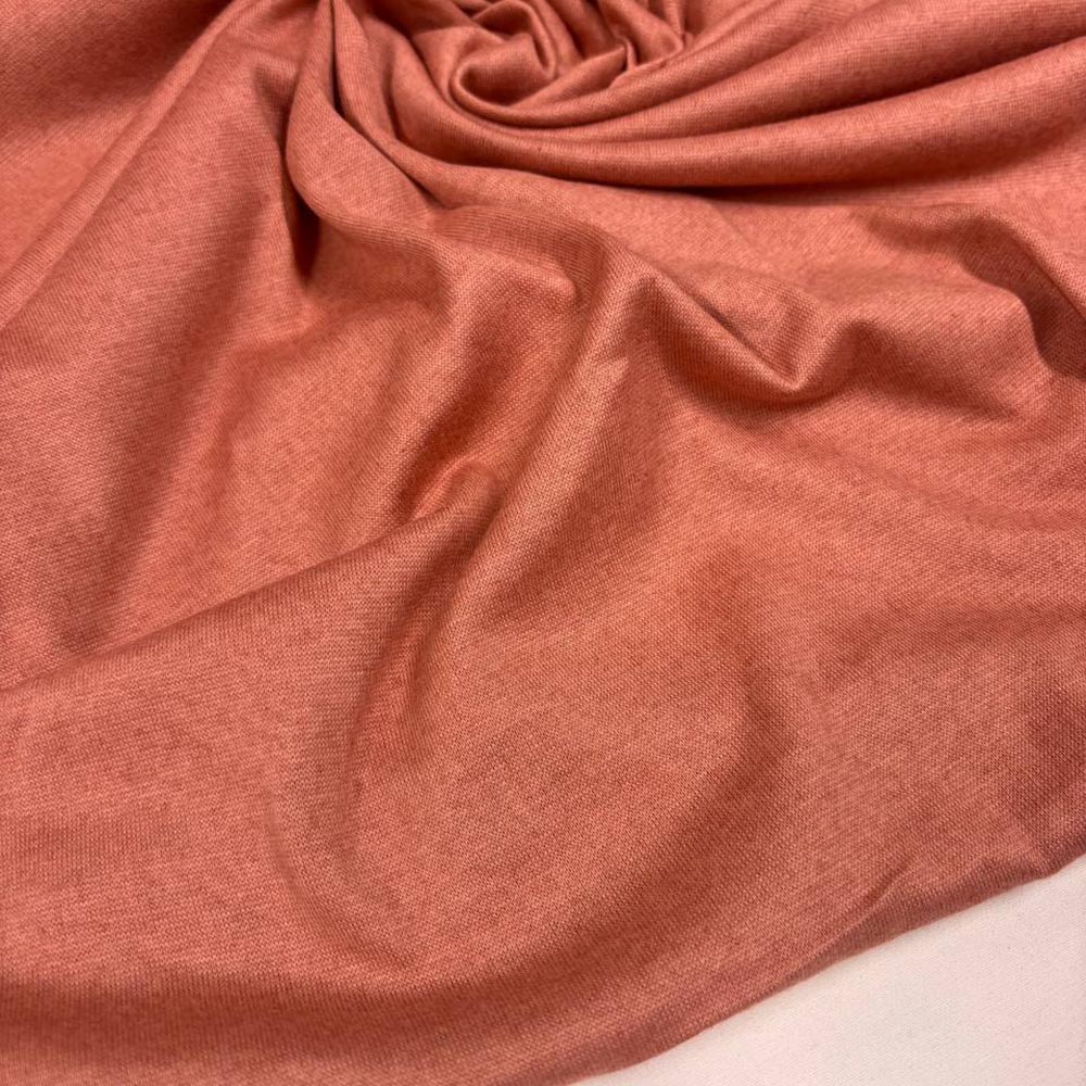 Плательно-блузочный хлопковый трикотаж кулирка с добавкой кашемира. Приглушенный коралловый оттенок. Материал мягкий, легкий, тактильно очень приятный. Идеален для лонгсливов, футболок, тонких платьев.