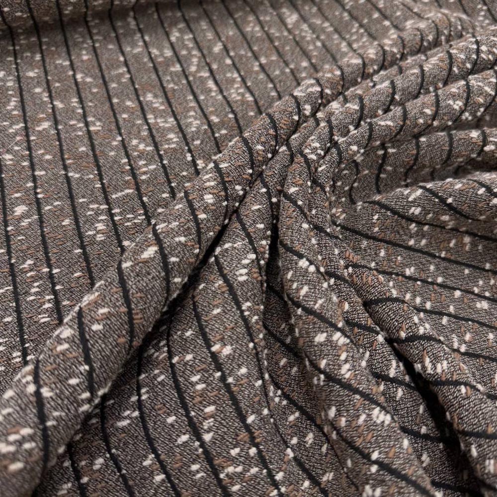 Костюмно-плательный твид букле B0tega Venett@. Двухсторонний материал: по-разному оформленная вертикальная полоска с буклированной нитью. Смотрится стильно и интересно. Мягкий и пластичный не расыпчатый твид для костюмов, юбок, жакетов, платьев. В наличии в двух расцветках: нейтральной серой и более теплой кофейной.