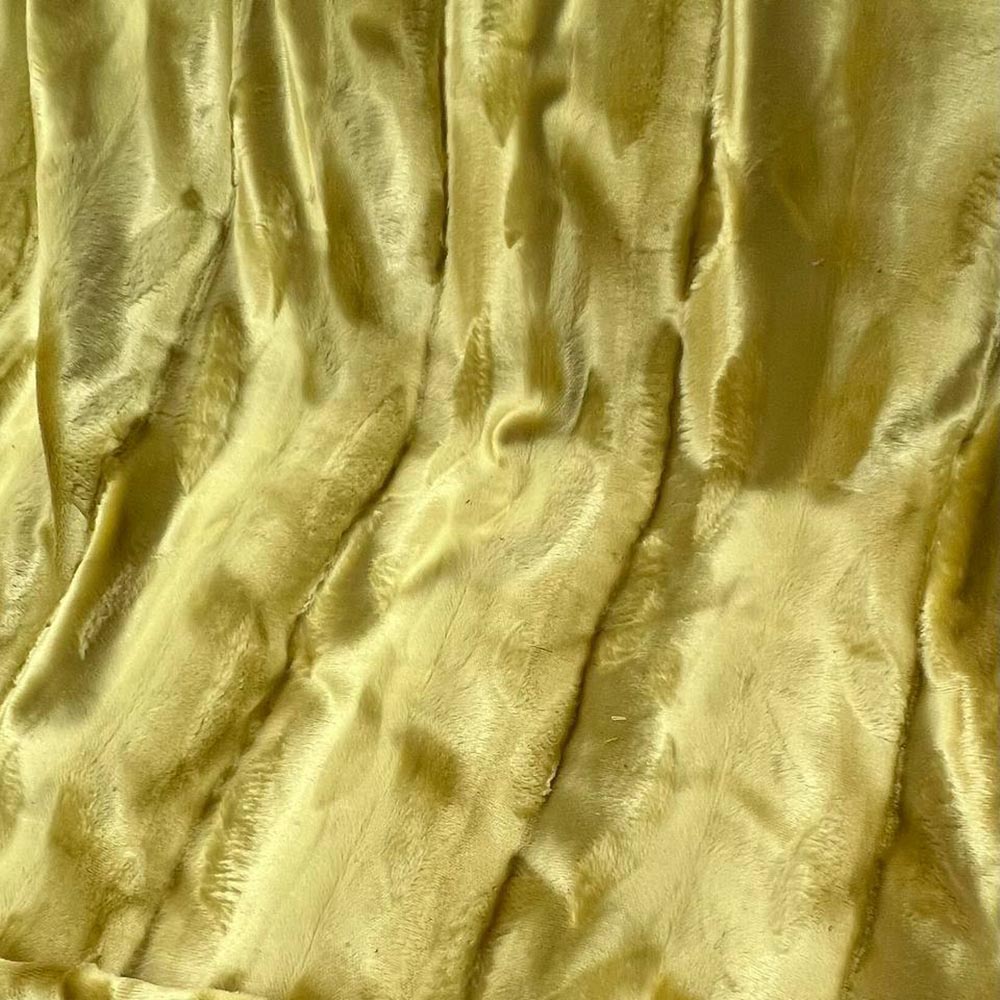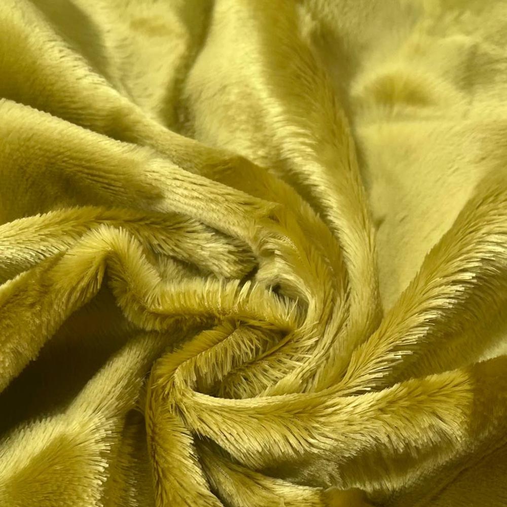 Эко-мех на основе хлопка с вискозой Marz0t0. Короткий ворс Кавалино. Слегка приглушенный желтый оттенок с переходами за счет направления ворса. Для стильных пальто, курток, жакетов, аксессуаров.