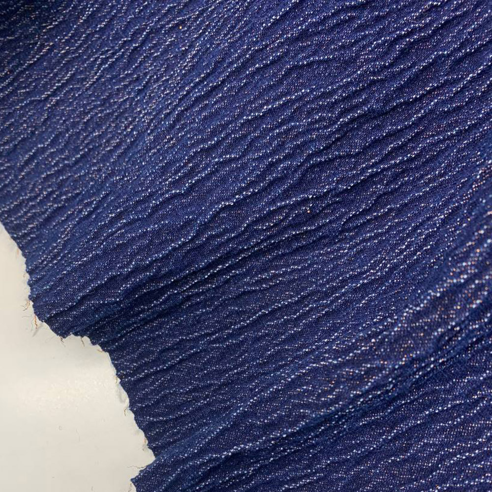 Костюмно-плательный фактурный джинс с люрексом. Хлопковое полотно темно-синей цветовой гамме с фактурой рябью. Материал достаточно плотный, держит форму, но пластичный подходит на плотные платья, костюмы, жакеты, легкие тренчи.