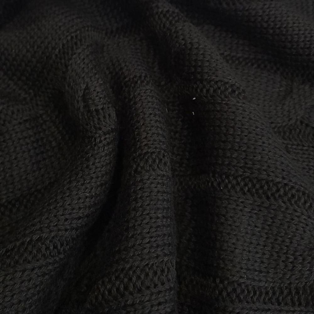 Трикотажное хлопковое полотно с вязаной фактурой BruneII0 CuccineIII. Глубокий черный цвет. Мягкий, лёгкий, ниспадающий материал для платьев, кардиганов, мягких костюмов.